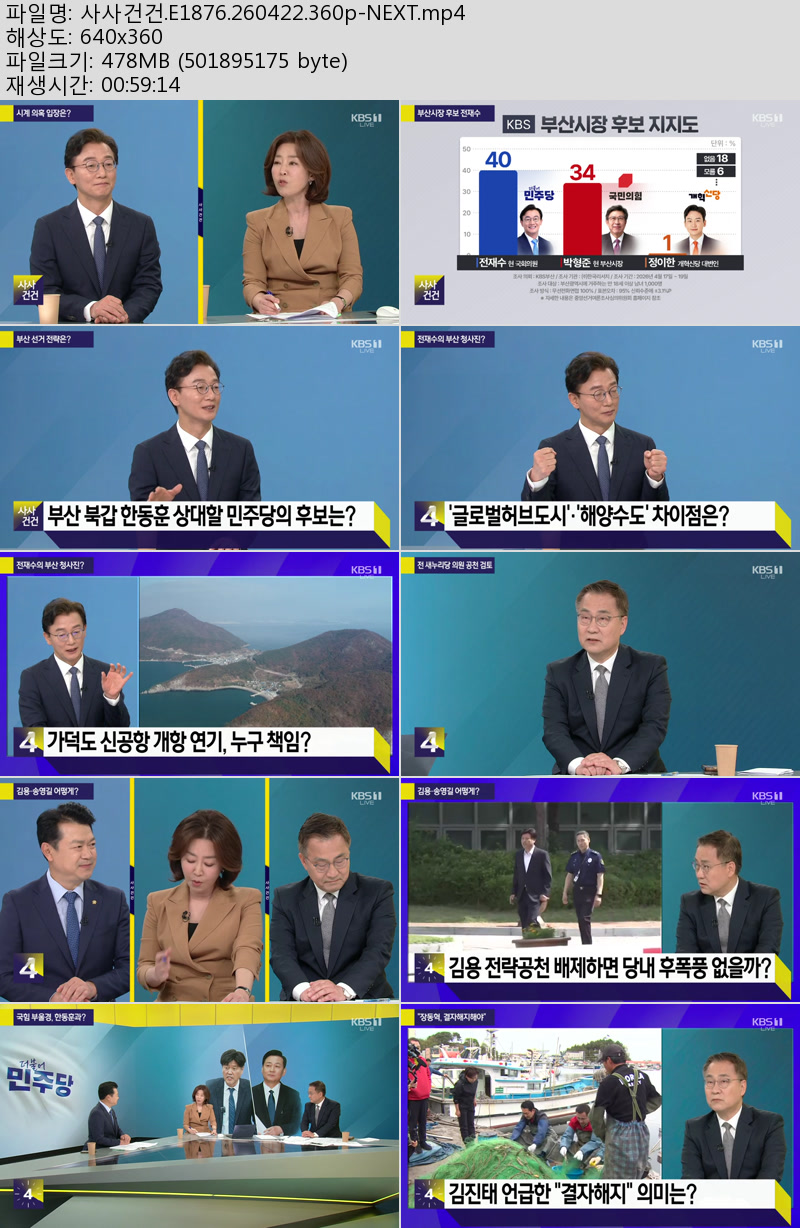방송/동영상 방송/동영상 사사건건.E1876.260422.360p-NEXT 우야쓰꼬 2026.04.22 3,544 341 다운로드 추천 341 북마크 공유 다운로드 파일 · 1개 사사건건.E1876.260422.360p-NEXT.mp4 FILE 478.6M 다운로드 TAGS #사사건건 #E1876 #NEXT