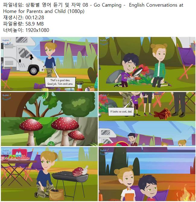 애니메이션 애니메이션 상황별 영어 듣기 및 자막 08 - Go Camping - English Conversati.. 쿠무 2026.04.24 4,059 419 다운로드 추천 419 북마크 공유 다운로드 파일 · 1개 상황별 영어 듣기 및 자막 08 - Go Camping - English Conversations at.. FILE 58.9M 다운로드 TAGS #상황별 #영어 #듣기 #자막 #Go