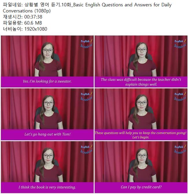 애니메이션 애니메이션 상황별 영어 듣기.10화_Basic English Questions and Answers for .. 쿠무 2026.04.24 3,966 268 다운로드 추천 268 북마크 공유 다운로드 파일 · 1개 상황별 영어 듣기.10화_Basic English Questions and Answers for Daily .. FILE 60.6M 다운로드 TAGS #상황별 #영어 #듣기 #10화 #Basic