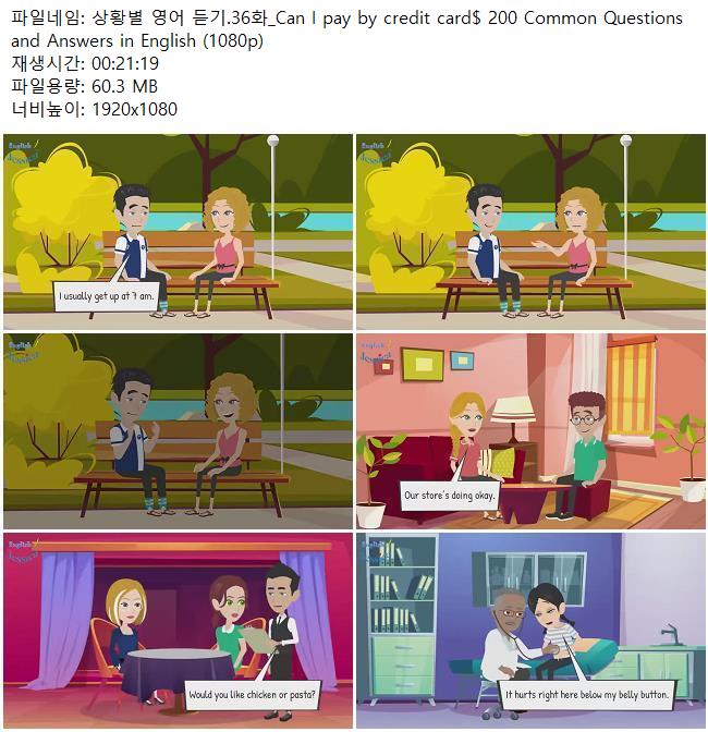 애니메이션 애니메이션 상황별 영어 듣기.36화_Can I pay by credit card$ 200 Common Que.. 쿠무 2026.04.24 6,828 399 다운로드 추천 399 북마크 공유 다운로드 파일 · 1개 상황별 영어 듣기.36화_Can I pay by credit card$ 200 Common Questions.. FILE 60.3M 다운로드 TAGS #상황별 #영어 #듣기 #36화 #Can