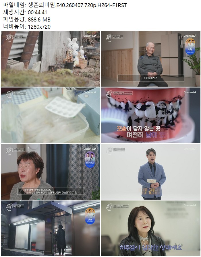 방송/동영상 방송/동영상 생존의비밀.E40.260407.720p.H264 디스사랑 2026.04.24 6,582 236 다운로드 추천 236 북마크 공유 다운로드 파일 · 1개 생존의비밀.E40.260407.720p.H264-F1RST.mp4 FILE 888.6M 다운로드 TAGS #생존의비밀 #E40 #H264 #F1RST