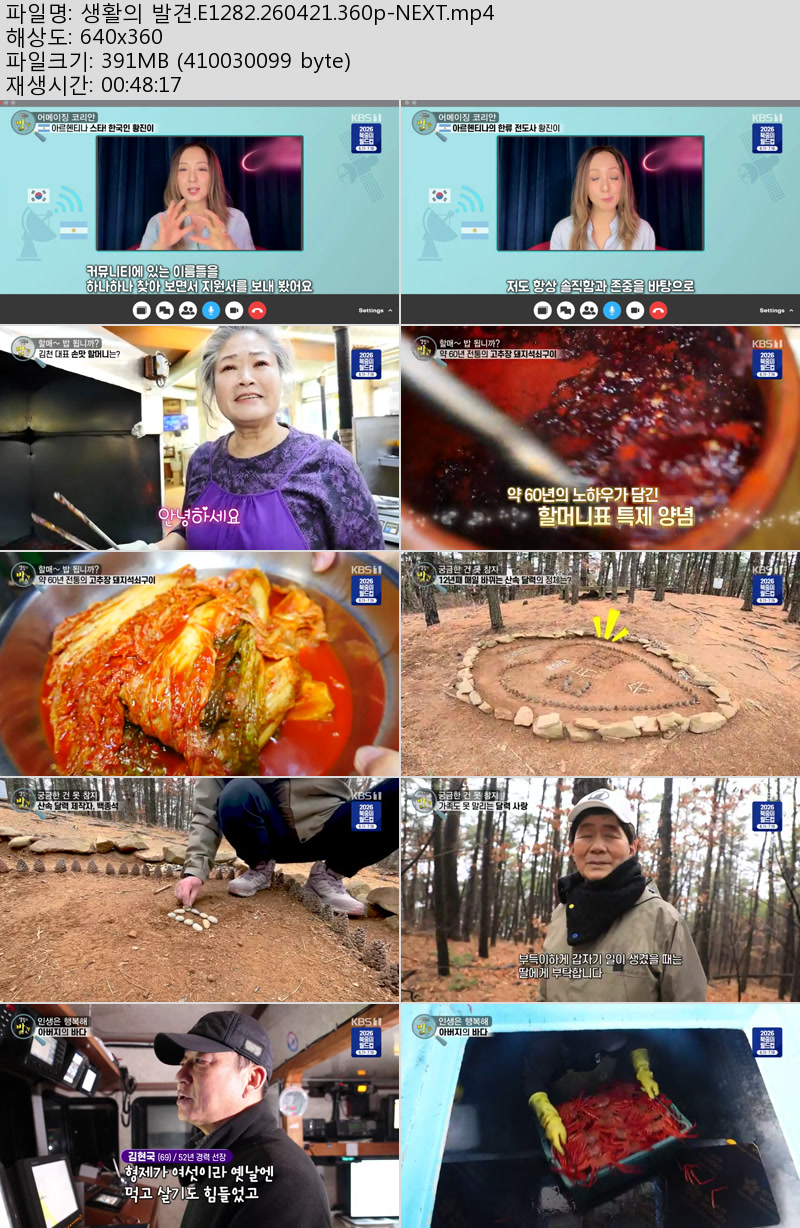 방송/동영상 방송/동영상 생활의 발견.E1282.260421.360p-NEXT 우야쓰꼬 2026.04.22 7,939 358 다운로드 추천 358 북마크 공유 다운로드 파일 · 1개 생활의 발견.E1282.260421.360p-NEXT.mp4 FILE 391.0M 다운로드 TAGS #생활의 #발견 #E1282 #NEXT