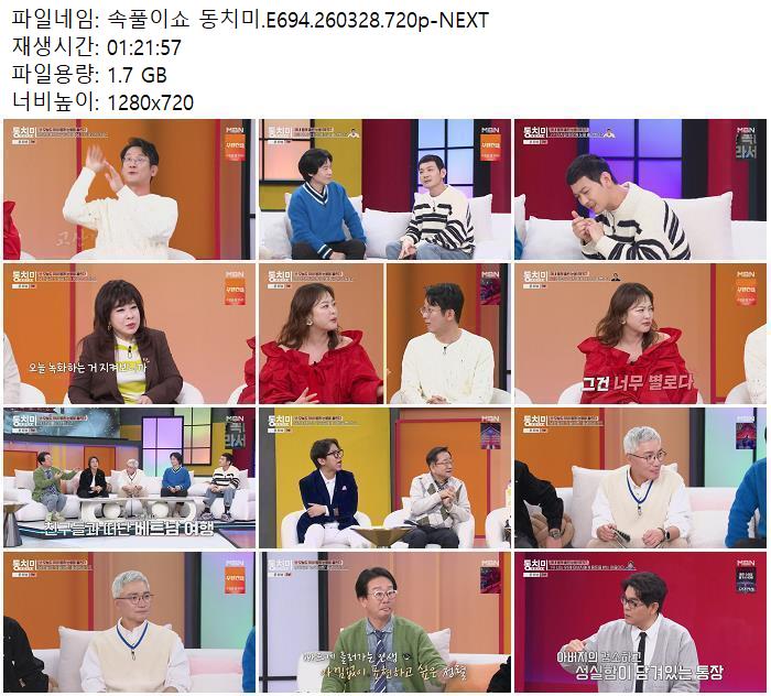 방송/동영상 방송/동영상 속풀이쇼 동치미.E694.260328.720p-NEXT zndhkgkgk 2026.04.24 4,028 389 다운로드 추천 389 북마크 공유 다운로드 파일 · 1개 속풀이쇼 동치미.E694.260328.720p-NEXT.mp4 FILE 1.7G 다운로드 TAGS #속풀이쇼 #동치미 #E694 #NEXT