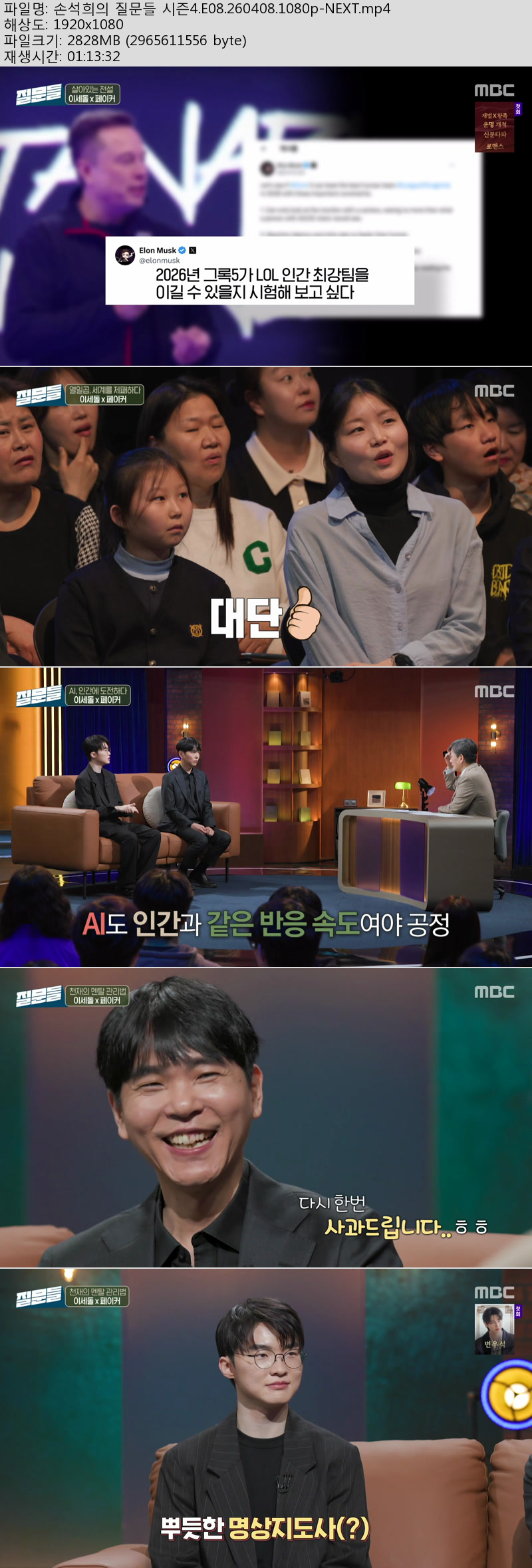 방송/동영상 방송/동영상 손석희의 질문들 시즌4.E08.260408.1080p-NEXT 에이버 2026.04.24 4,599 466 다운로드 추천 466 북마크 공유 다운로드 파일 · 1개 손석희의 질문들 시즌4.E08.260408.1080p-NEXT.mp4 FILE 2.8G 다운로드 TAGS #손석희의 #질문들 #시즌4 #E08 #NEXT