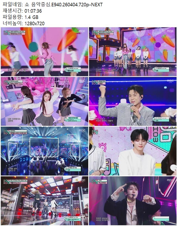 방송/동영상 방송/동영상 쇼 음악중심.E940.260404.720p-NEXT 디스사랑 2026.04.24 4,280 373 다운로드 추천 373 북마크 공유 다운로드 파일 · 1개 쇼 음악중심.E940.260404.720p-NEXT.mp4 FILE 1.4G 다운로드 TAGS #음악중심 #E940 #NEXT