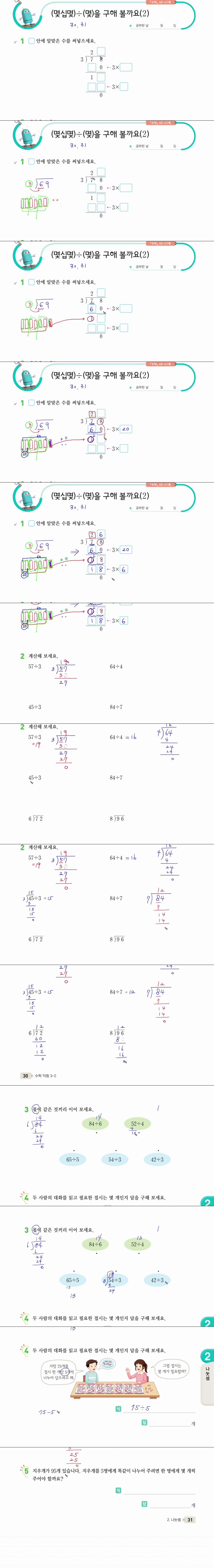 애니메이션 애니메이션 (수익 풀이) 초등 3학년 2학기 2단원 나눗셈 5차시 30, 31쪽 (몇십.. jibori 2026.04.24 7,237 259 다운로드 추천 259 북마크 공유 다운로드 파일 · 1개 (수익 풀이) 초등 3학년 2학기 2단원 나눗셈 5차시 30, 31쪽 (몇십몇)÷(.. FILE 18.1M 다운로드 TAGS #수익 #풀이 #초등 #3학년 #2학기