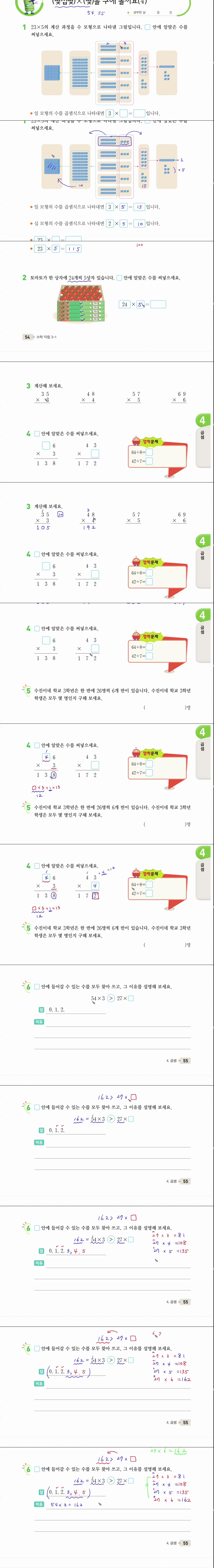 애니메이션 애니메이션 (수학익힘 풀이) 초등 3학년 1학기 수학 4단원 곱셈 6차시 54, 55.. jibori 2026.04.24 6,559 374 다운로드 추천 374 북마크 공유 다운로드 파일 · 1개 (수학익힘 풀이) 초등 3학년 1학기 수학 4단원 곱셈 6차시 54, 55쪽 (몇.. FILE 23.0M 다운로드 TAGS #수학익힘 #풀이 #초등 #3학년 #1학기