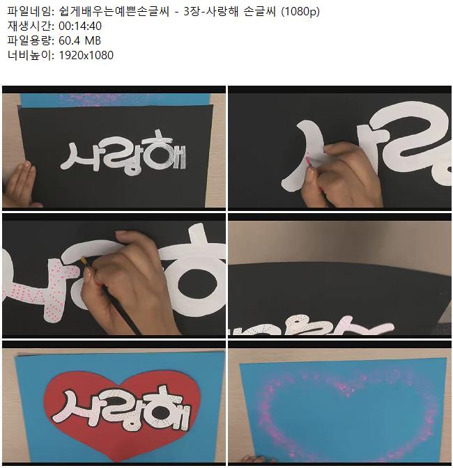 애니메이션 애니메이션 쉽게배우는예쁜손글씨 - 3장-사랑해 손글씨 (1080p) 쿠무 2026.04.24 7,514 278 다운로드 추천 278 북마크 공유 다운로드 파일 · 1개 쉽게배우는예쁜손글씨 - 3장-사랑해 손글씨 (1080p).mkv FILE 60.4M 다운로드 TAGS #쉽게배우는예쁜손글씨 #3장 #사랑해 #손글씨