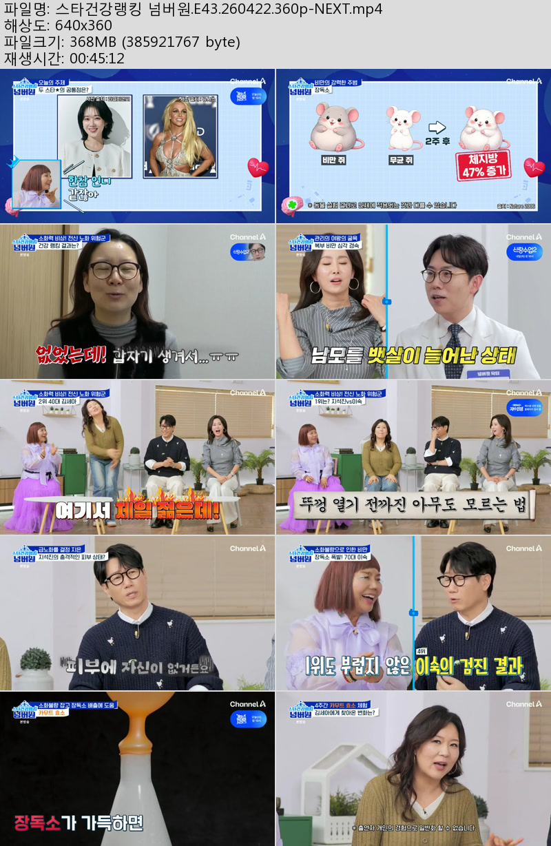 방송/동영상 방송/동영상 스타건강랭킹 넘버원.E43.260422.360p-NEXT 우야쓰꼬 2026.04.22 3,069 268 다운로드 추천 268 북마크 공유 다운로드 파일 · 1개 스타건강랭킹 넘버원.E43.260422.360p-NEXT.mp4 FILE 368.0M 다운로드 TAGS #스타건강랭킹 #넘버원 #E43 #NEXT