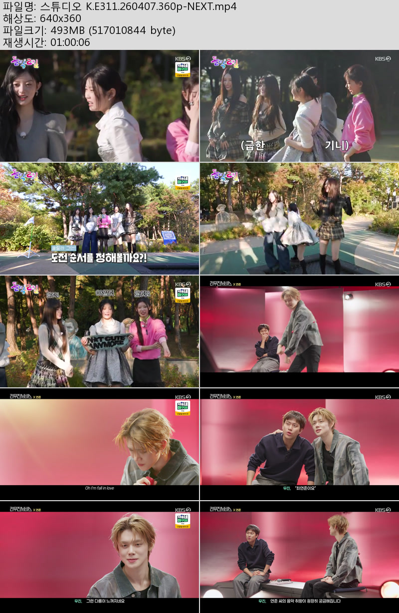 방송/동영상 방송/동영상 스튜디오 K.E311.260407.360p-NEXT 우야쓰꼬 2026.04.24 3,507 473 다운로드 추천 473 북마크 공유 다운로드 파일 · 1개 스튜디오 K.E311.260407.360p-NEXT.mp4 FILE 493.1M 다운로드 TAGS #스튜디오 #E311 #NEXT