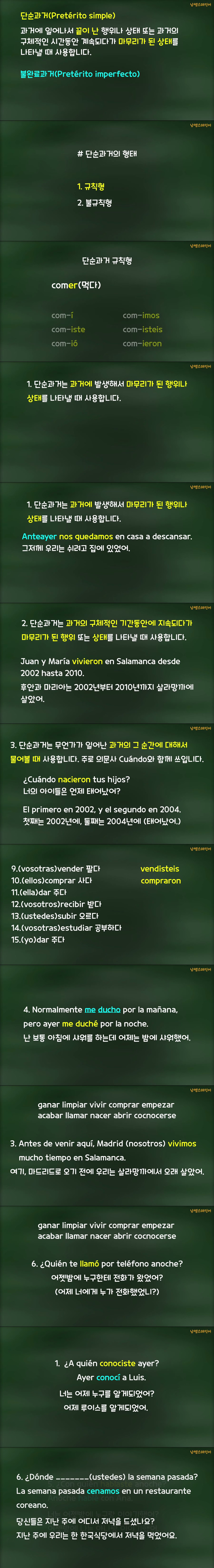 애니메이션 애니메이션 스페인어 문법 단순과거 1편 jibori 2026.04.24 6,824 484 다운로드 추천 484 북마크 공유 다운로드 파일 · 1개 스페인어 문법 단순과거 1편.mp4 FILE 34.4M 다운로드 TAGS #스페인어 #문법 #단순과거 #1편