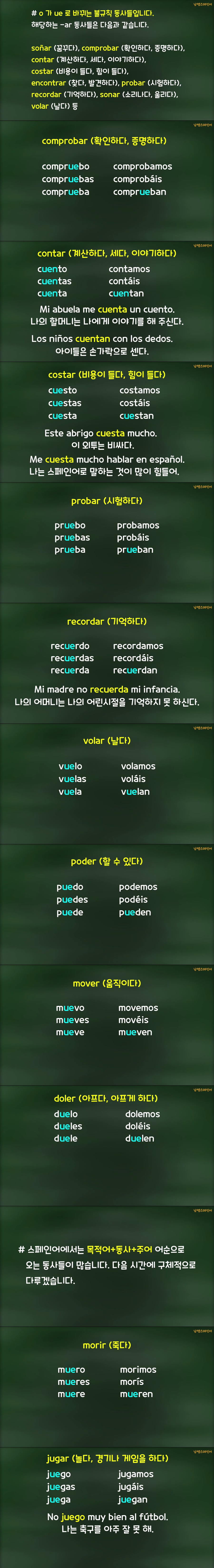 애니메이션 애니메이션 스페인어 문법 동사편-직설법 현재 불규칙동사 3편 jibori 2026.04.24 6,836 367 다운로드 추천 367 북마크 공유 다운로드 파일 · 1개 스페인어 문법 동사편-직설법 현재 불규칙동사 3편.mp4 FILE 30.1M 다운로드 TAGS #스페인어 #문법 #동사편 #직설법 #현재