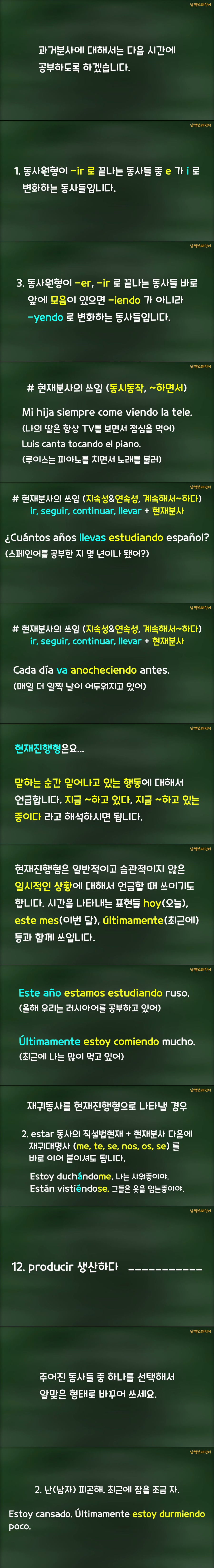 애니메이션 애니메이션 스페인어 문법 현재분사 & 현재진행형 jibori 2026.04.24 5,154 410 다운로드 추천 410 북마크 공유 다운로드 파일 · 1개 스페인어 문법 현재분사 & 현재진행형.mp4 FILE 44.3M 다운로드 TAGS #스페인어 #문법 #현재분사 #현재진행형