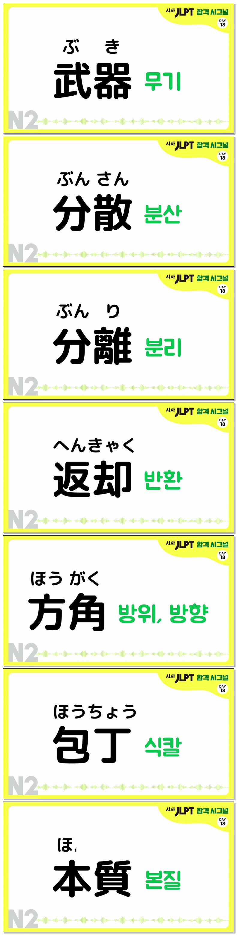 애니메이션 애니메이션 [시사 JLPT 합격시그널 N2] 데일리 단어 퀴즈 DAY 18 (명사편) jibori 2026.04.24 7,899 385 다운로드 추천 385 북마크 공유 다운로드 파일 · 1개 [시사 JLPT 합격시그널 N2] 데일리 단어 퀴즈 DAY 18 (명사편).mp4 FILE 11.9M 다운로드 TAGS #시사 #JLPT #합격시그널 #N2 #데일리