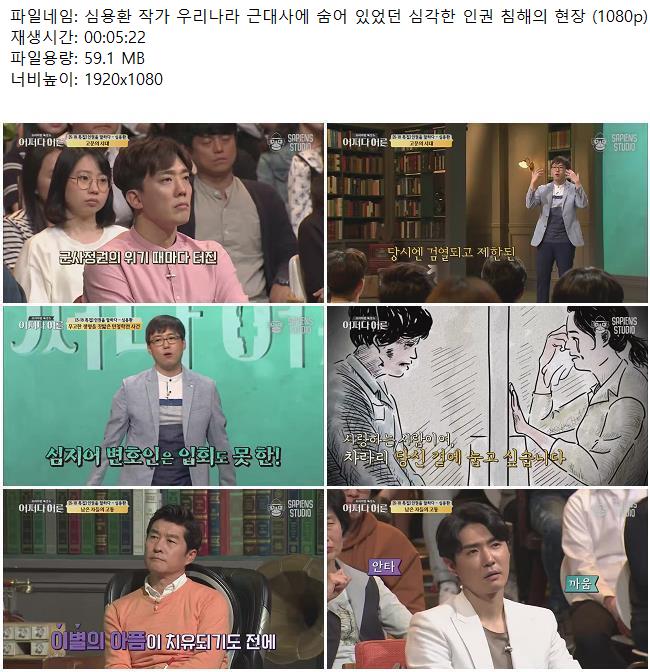 애니메이션 애니메이션 심용환 작가 우리나라 근대사에 숨어 있었던 심각한 인권 침해의 .. 쿠무 2026.04.24 6,130 377 다운로드 추천 377 북마크 공유 다운로드 파일 · 1개 심용환 작가 우리나라 근대사에 숨어 있었던 심각한 인권 침해의 현장 (1.. FILE 59.1M 다운로드 TAGS #심용환 #작가 #우리나라 #근대사에 #숨어