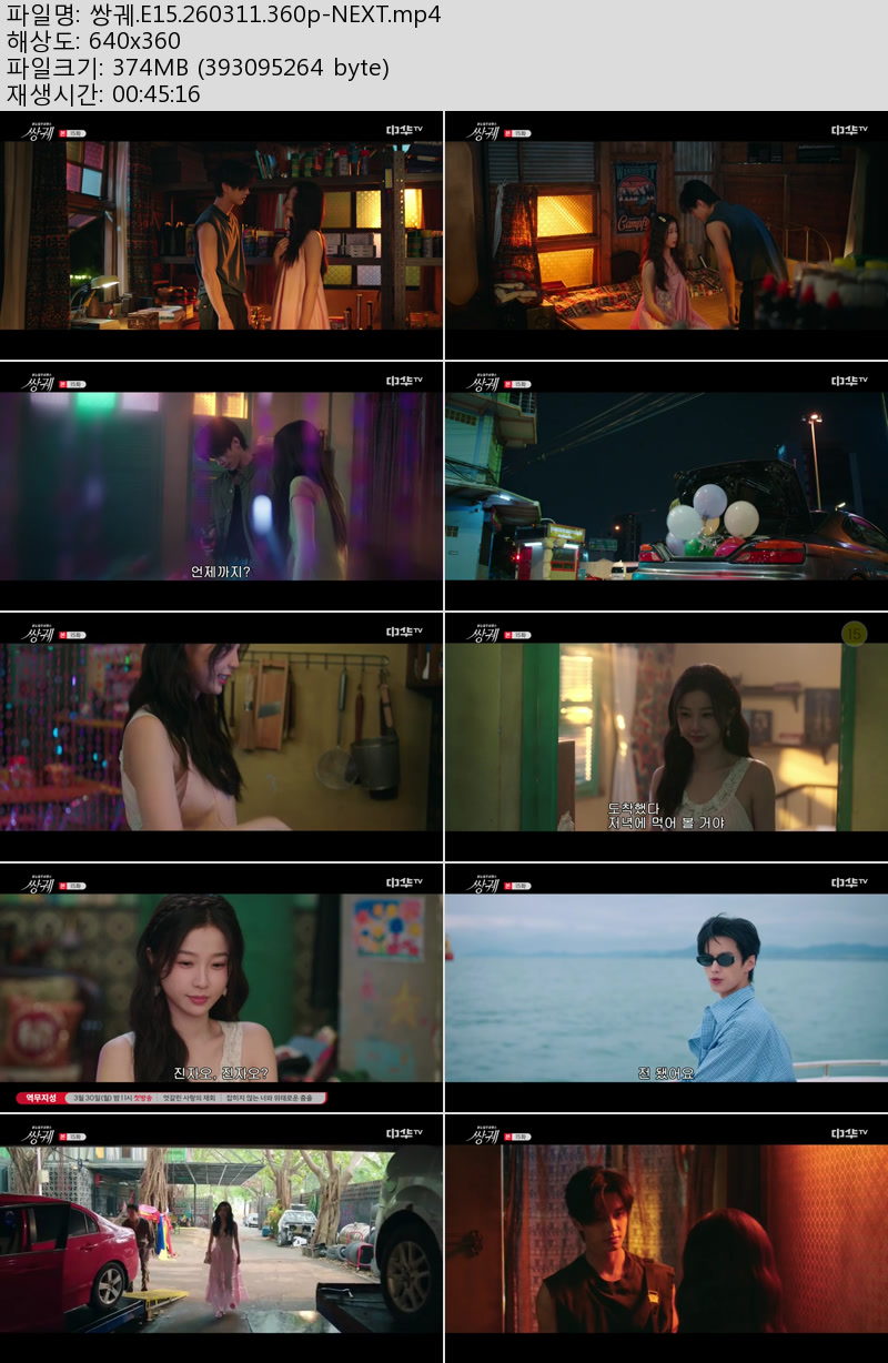 드라마 드라마 쌍궤.E15.260311.360p-NEXT 우야쓰꼬 2026.04.24 6,888 362 다운로드 추천 362 북마크 공유 다운로드 파일 · 1개 쌍궤.E15.260311.360p-NEXT.mp4 FILE 374.9M 다운로드 TAGS #쌍궤 #E15 #NEXT