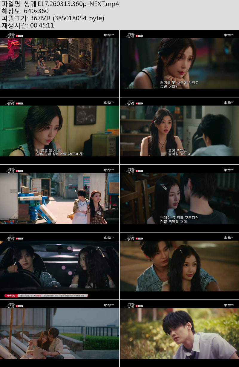 드라마 드라마 쌍궤.E17.260313.360p-NEXT 우야쓰꼬 2026.04.24 7,514 437 다운로드 추천 437 북마크 공유 다운로드 파일 · 1개 쌍궤.E17.260313.360p-NEXT.mp4 FILE 367.2M 다운로드 TAGS #쌍궤 #E17 #NEXT