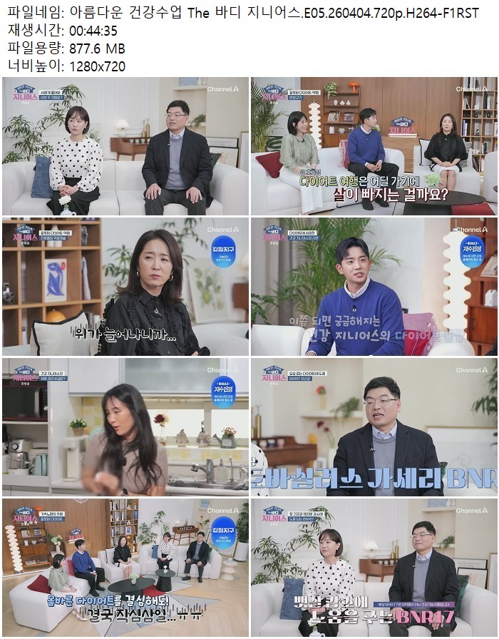 방송/동영상 방송/동영상 아름다운 건강수업 The 바디 지니어스.E05.260404.720p.H264 디스사랑 2026.04.24 4,523 241 다운로드 추천 241 북마크 공유 다운로드 파일 · 1개 아름다운 건강수업 The 바디 지니어스.E05.260404.720p.H264-F1RST.mp4 FILE 877.6M 다운로드 TAGS #아름다운 #건강수업 #The #바디 #지니어스