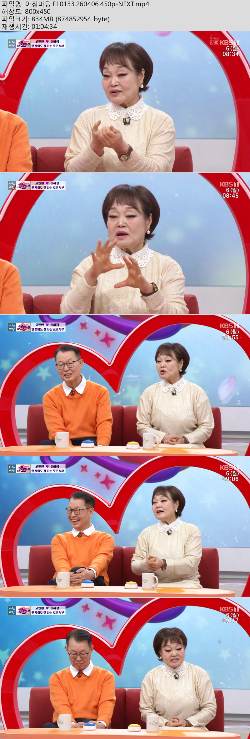 방송/동영상 방송/동영상 아침마당.E10133.260406.450p-NEXT 긍정고수 2026.04.24 5,870 479 다운로드 추천 479 북마크 공유 다운로드 파일 · 1개 아침마당.E10133.260406.450p-NEXT.mp4 FILE 834.3M 다운로드 TAGS #아침마당 #E10133 #NEXT