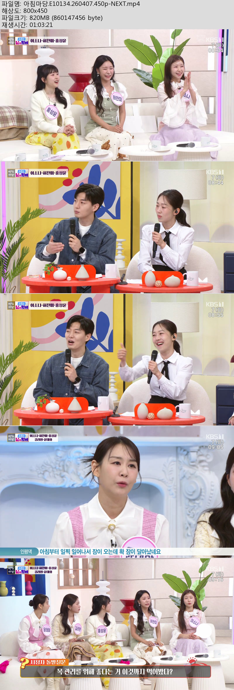 방송/동영상 방송/동영상 아침마당.E10134.260407.450p-NEXT 내사랑비타민 2026.04.24 3,907 316 다운로드 추천 316 북마크 공유 다운로드 파일 · 1개 아침마당.E10134.260407.450p-NEXT.mp4 FILE 820.3M 다운로드 TAGS #아침마당 #E10134 #NEXT