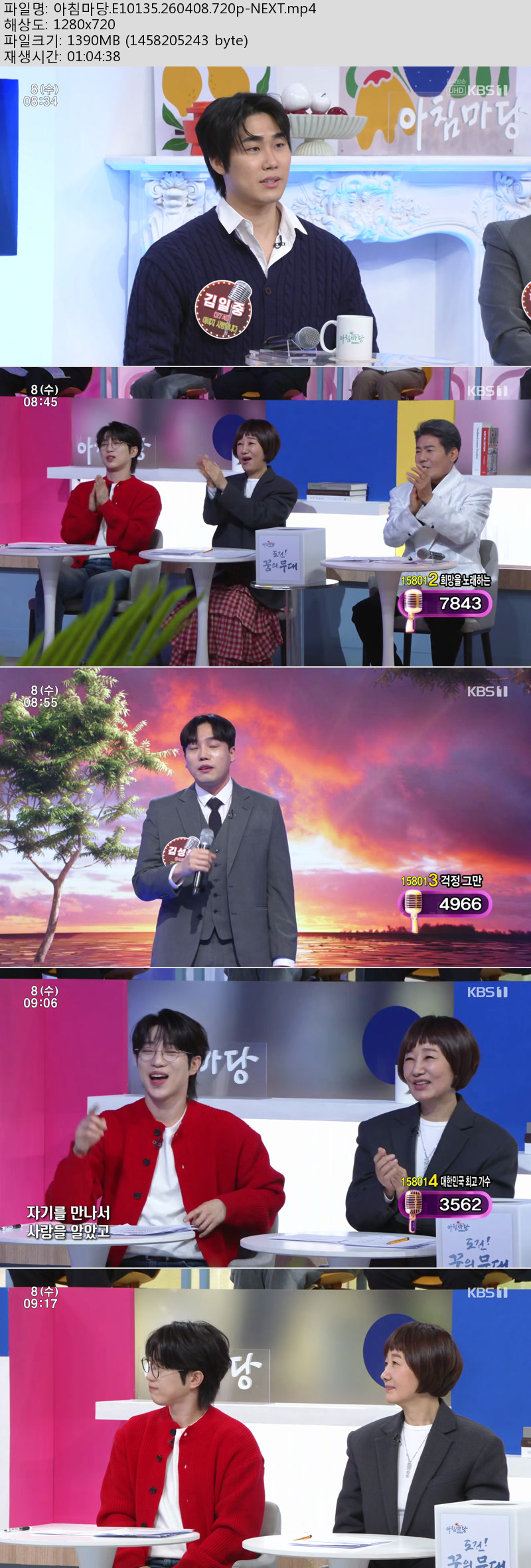 방송/동영상 방송/동영상 아침마당.E10135.260408.720p-NEXT 방송다좋아 2026.04.24 7,322 359 다운로드 추천 359 북마크 공유 다운로드 파일 · 1개 아침마당.E10135.260408.720p-NEXT.mp4 FILE 1.4G 다운로드 TAGS #아침마당 #E10135 #NEXT