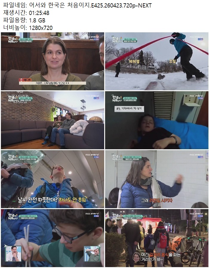 방송/동영상 방송/동영상 어서와 한국은 처음이지.E425.260423.720p-NEXT 디스사랑 2026.04.23 5,228 254 다운로드 추천 254 북마크 공유 다운로드 파일 · 1개 어서와 한국은 처음이지.E425.260423.720p-NEXT.mp4 FILE 1.8G 다운로드 TAGS #어서와 #한국은 #처음이지 #E425 #NEXT