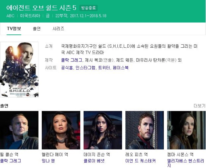 드라마 드라마 에이전트 오브 쉴드 시즌5 22부작 完 한글자막 720p 마블 히어로 알뜰폰 2026.01.01 3,442 631 다운로드 추천 631 북마크 공유 다운로드 파일 · 1개 Marvels.Agents.of.S.H.I.E.L.D.S05E01.720p.HDTV.mkv FILE 18.0G 다운로드 TAGS #에이전트 #오브 #쉴드 #시즌5 #22부작 #한글자막 #720p #마블 #히어로
