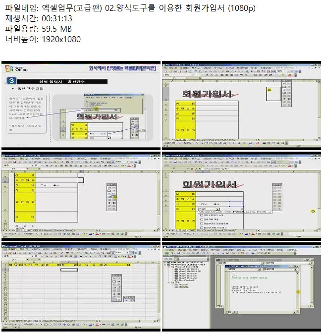 애니메이션 애니메이션 엑셀업무(고급편) 02.양식도구를 이용한 회원가입서 (1080p) 쿠무 2026.04.24 3,060 231 다운로드 추천 231 북마크 공유 다운로드 파일 · 1개 엑셀업무(고급편) 02.양식도구를 이용한 회원가입서 (1080p).mkv FILE 59.5M 다운로드 TAGS #엑셀업무 #고급편 #양식도구를 #이용한 #회원가입서