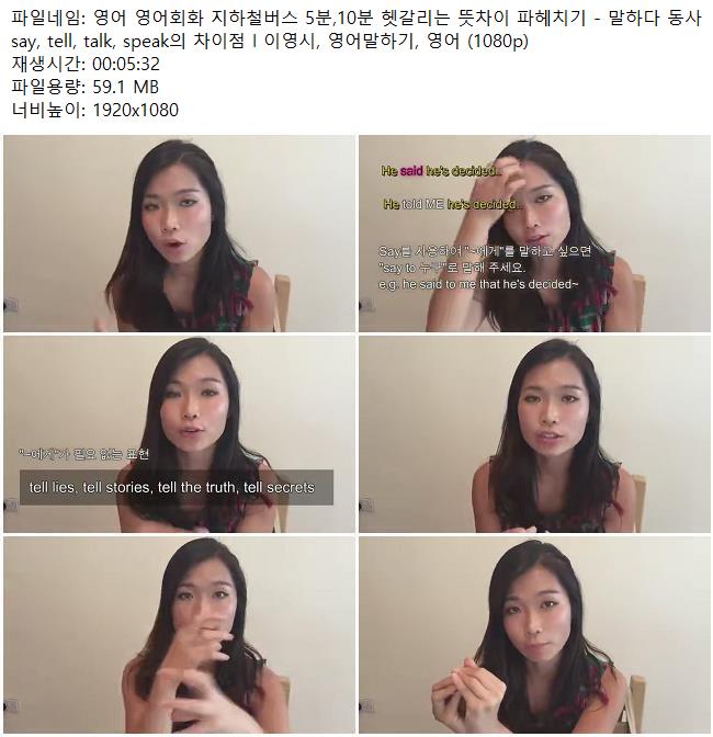 애니메이션 애니메이션 영어 영어회화 지하철버스 5분,10분 헷갈리는 뜻차이 파헤치기 - .. 쿠무 2026.04.24 6,112 440 다운로드 추천 440 북마크 공유 다운로드 파일 · 1개 영어 영어회화 지하철버스 5분,10분 헷갈리는 뜻차이 파헤치기 - 말하다 .. FILE 59.1M 다운로드 TAGS #영어 #영어회화 #지하철버스 #5분 #10분