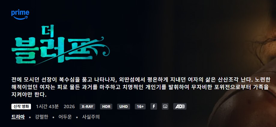 영화 영화 [영화-액션] 더 블러프.The Bluff.2026.1080p.한글자막 인운트 2026.04.24 4,031 361 다운로드 추천 361 북마크 공유 다운로드 파일 · 1개 [영화-액션] 더 블러프.The Bluff.2026.1080p.한글자막 FILE 1.9G 다운로드 TAGS #영화 #액션 #블러프 #The #Bluff