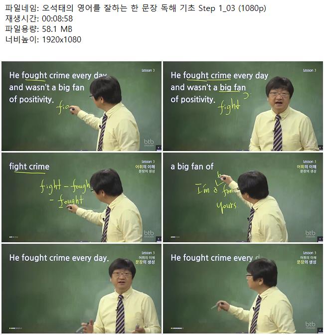 애니메이션 애니메이션 오석태의 영어를 잘하는 한 문장 독해 기초 Step 1_03 (1080p) 쿠무 2026.04.24 5,918 414 다운로드 추천 414 북마크 공유 다운로드 파일 · 1개 오석태의 영어를 잘하는 한 문장 독해 기초 Step 1_03 (1080p).mkv FILE 58.1M 다운로드 TAGS #오석태의 #영어를 #잘하는 #문장 #독해