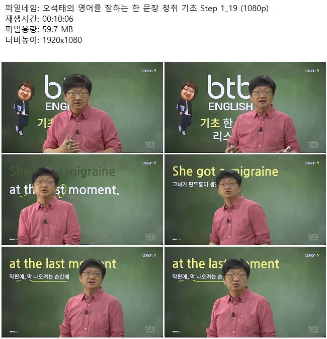 애니메이션 애니메이션 오석태의 영어를 잘하는 한 문장 청취 기초 Step 1_19 (1080p) 쿠무 2026.04.24 6,294 324 다운로드 추천 324 북마크 공유 다운로드 파일 · 1개 오석태의 영어를 잘하는 한 문장 청취 기초 Step 1_19 (1080p).mkv FILE 59.7M 다운로드 TAGS #오석태의 #영어를 #잘하는 #문장 #청취