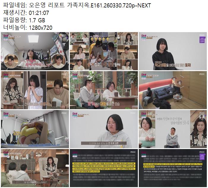 방송/동영상 방송/동영상 오은영 리포트 가족지옥.E161.260330.720p-NEXT zndhkgkgk 2026.04.24 5,611 204 다운로드 추천 204 북마크 공유 다운로드 파일 · 1개 오은영 리포트 가족지옥.E161.260330.720p-NEXT.mp4 FILE 1.7G 다운로드 TAGS #오은영 #리포트 #가족지옥 #E161 #NEXT