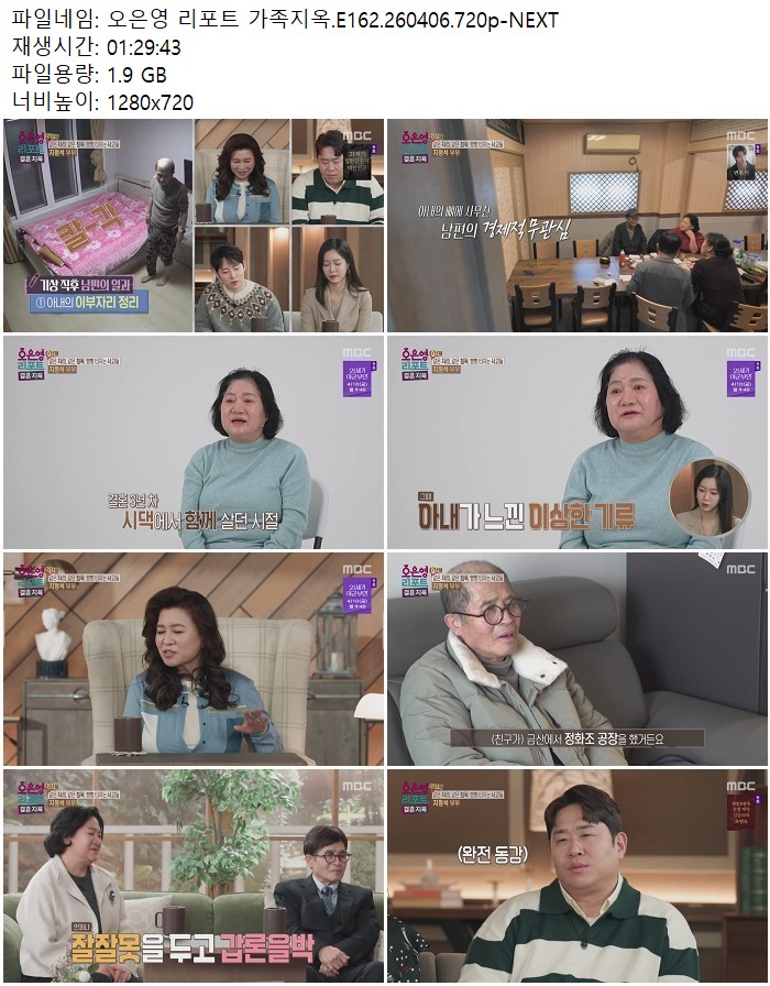 방송/동영상 방송/동영상 오은영 리포트 가족지옥.E162.260406.720p-NEXT 디스사랑 2026.04.24 3,004 419 다운로드 추천 419 북마크 공유 다운로드 파일 · 1개 오은영 리포트 가족지옥.E162.260406.720p-NEXT.mp4 FILE 1.9G 다운로드 TAGS #오은영 #리포트 #가족지옥 #E162 #NEXT