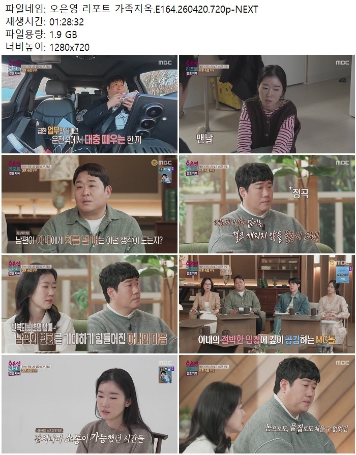 방송/동영상 방송/동영상 오은영 리포트 가족지옥.E164.260420.720p-NEXT 디스사랑 2026.04.22 5,612 333 다운로드 추천 333 북마크 공유 다운로드 파일 · 1개 오은영 리포트 가족지옥.E164.260420.720p-NEXT.mp4 FILE 1.9G 다운로드 TAGS #오은영 #리포트 #가족지옥 #E164 #NEXT
