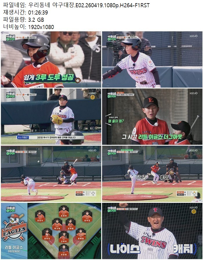 방송/동영상 방송/동영상 우리동네 야구대장.E02.260419.1080p.H264 디스사랑 2026.04.22 6,137 244 다운로드 추천 244 북마크 공유 다운로드 파일 · 1개 우리동네 야구대장.E02.260419.1080p.H264-F1RST.mp4 FILE 3.2G 다운로드 TAGS #우리동네 #야구대장 #E02 #H264 #F1RST