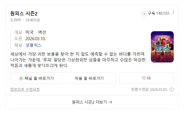 드라마 드라마 [원ㅍㅣ스 시즌2] 초저용량 1080p 8부작 완결 자체자막 pksy2313 2026.04.24 3,692 220 다운로드 추천 220 북마크 공유 다운로드 파일 · 1개 [원.ㅍㅣ.스 시즌2] 초저용량 8부작 완결 자체자막 FILE 3.7G 다운로드 TAGS #원ㅍㅣ스 #시즌2 #초저용량 #8부작 #완결