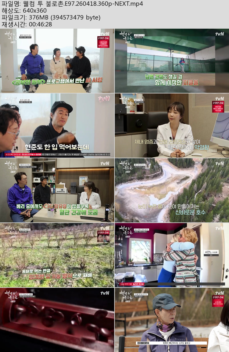 방송/동영상 방송/동영상 웰컴 투 불로촌.E97.260418.360p-NEXT 우야쓰꼬 2026.04.22 5,604 344 다운로드 추천 344 북마크 공유 다운로드 파일 · 1개 웰컴 투 불로촌.E97.260418.360p-NEXT.mp4 FILE 376.3M 다운로드 TAGS #웰컴 #불로촌 #E97 #NEXT