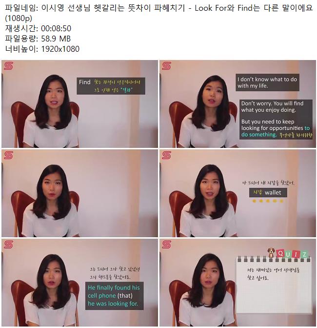 애니메이션 애니메이션 이시영 선생님 헷갈리는 뜻차이 파헤치기 - Look For와 Find는 다.. 쿠무 2026.04.24 3,442 398 다운로드 추천 398 북마크 공유 다운로드 파일 · 1개 이시영 선생님 헷갈리는 뜻차이 파헤치기 - Look For와 Find는 다른 말이.. FILE 58.9M 다운로드 TAGS #이시영 #선생님 #헷갈리는 #뜻차이 #파헤치기
