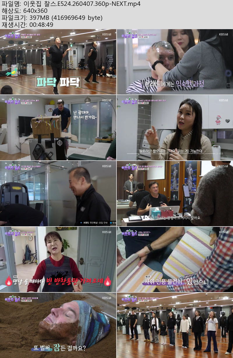 방송/동영상 방송/동영상 이웃집 찰스.E524.260407.360p-NEXT 우야쓰꼬 2026.04.24 7,327 309 다운로드 추천 309 북마크 공유 다운로드 파일 · 1개 이웃집 찰스.E524.260407.360p-NEXT.mp4 FILE 397.7M 다운로드 TAGS #이웃집 #찰스 #E524 #NEXT