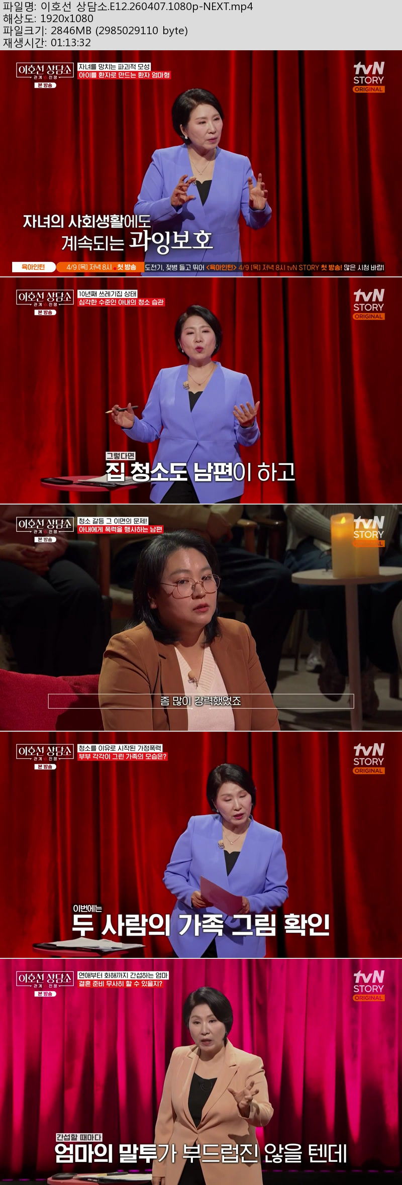 방송/동영상 방송/동영상 이호선 상담소.E12.260407.1080p-NEXT 에이버 2026.04.24 3,097 345 다운로드 추천 345 북마크 공유 다운로드 파일 · 1개 이호선 상담소.E12.260407.1080p-NEXT.mp4 FILE 2.8G 다운로드 TAGS #이호선 #상담소 #E12 #NEXT
