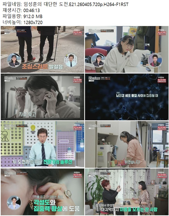 방송/동영상 방송/동영상 임성훈의 대단한 도전.E21.260405.720p.H264 디스사랑 2026.04.24 3,225 315 다운로드 추천 315 북마크 공유 다운로드 파일 · 1개 임성훈의 대단한 도전.E21.260405.720p.H264-F1RST.mp4 FILE 912.0M 다운로드 TAGS #임성훈의 #대단한 #도전 #E21 #H264