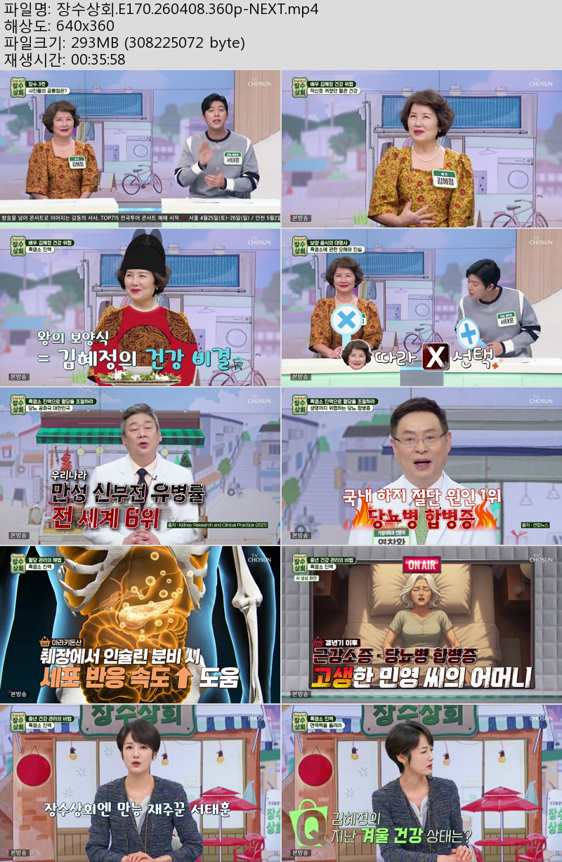 방송/동영상 방송/동영상 장수상회.E170.260408.360p-NEXT 우야쓰꼬 2026.04.24 3,113 472 다운로드 추천 472 북마크 공유 다운로드 파일 · 1개 장수상회.E170.260408.360p-NEXT.mp4 FILE 293.9M 다운로드 TAGS #장수상회 #E170 #NEXT