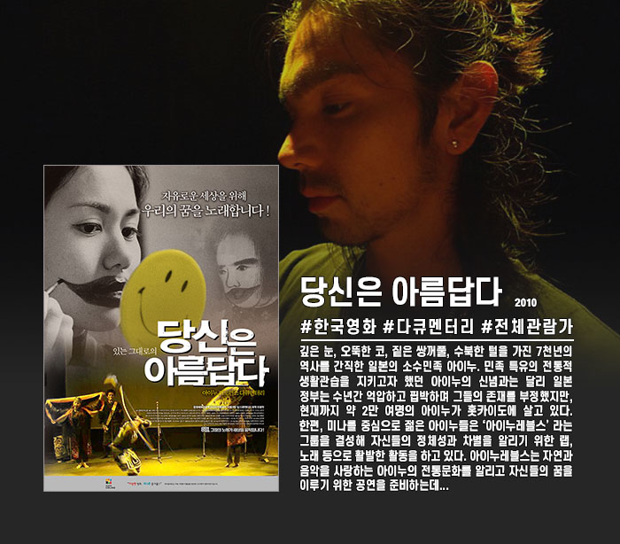 영화 영화 정식릴 [ 당신은 아름답다 ] 소수민족 아이누를 위한 다큐_bkmv buckets2 2026.04.24 6,682 500 다운로드 추천 500 북마크 공유 다운로드 파일 · 1개 당신은 아름답다.mp4 FILE 1.8G 다운로드 TAGS #정식릴 #당신은 #아름답다 #소수민족 #아이누를