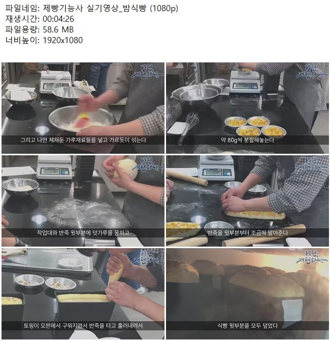 애니메이션 애니메이션 제빵기능사 실기영상_밤식빵 (1080p) 쿠무 2026.04.24 7,359 311 다운로드 추천 311 북마크 공유 다운로드 파일 · 1개 제빵기능사 실기영상_밤식빵 (1080p).mkv FILE 58.6M 다운로드 TAGS #제빵기능사 #실기영상 #밤식빵