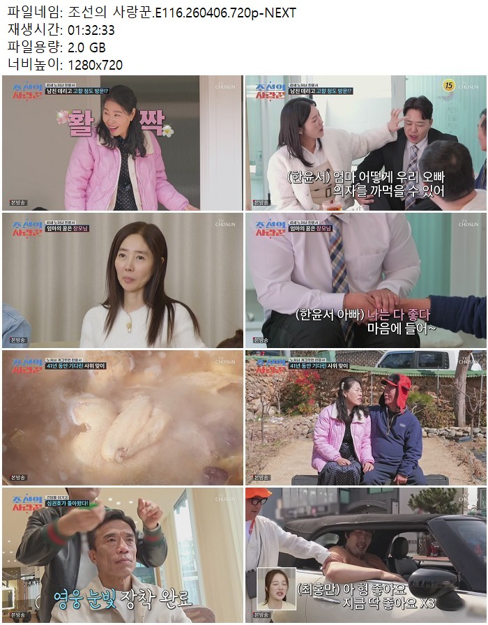방송/동영상 방송/동영상 조선의 사랑꾼.E116.260406.720p-NEXT 디스사랑 2026.04.24 7,433 491 다운로드 추천 491 북마크 공유 다운로드 파일 · 1개 조선의 사랑꾼.E116.260406.720p-NEXT.mp4 FILE 2.0G 다운로드 TAGS #조선의 #사랑꾼 #E116 #NEXT