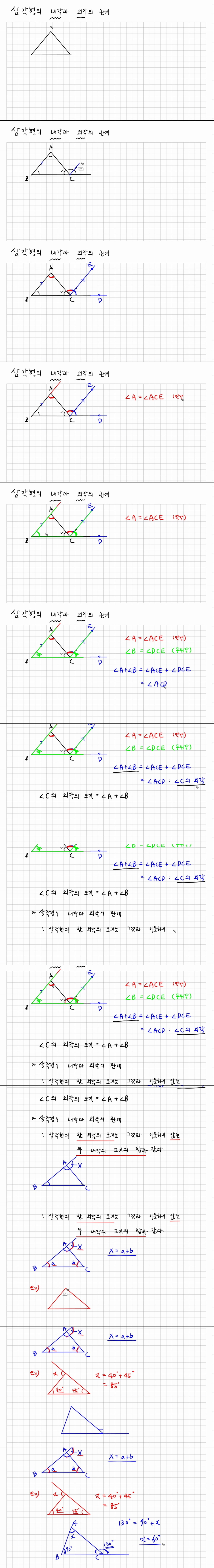 애니메이션 애니메이션 [중1 수학] 중1-5-2. 삼각형의 내각과 외각의 관계 jibori 2026.04.24 6,360 381 다운로드 추천 381 북마크 공유 다운로드 파일 · 1개 [중1 수학] 중1-5-2. 삼각형의 내각과 외각의 관계.mp4 FILE 17.8M 다운로드 TAGS #중1 #수학 #삼각형의 #내각과 #외각의