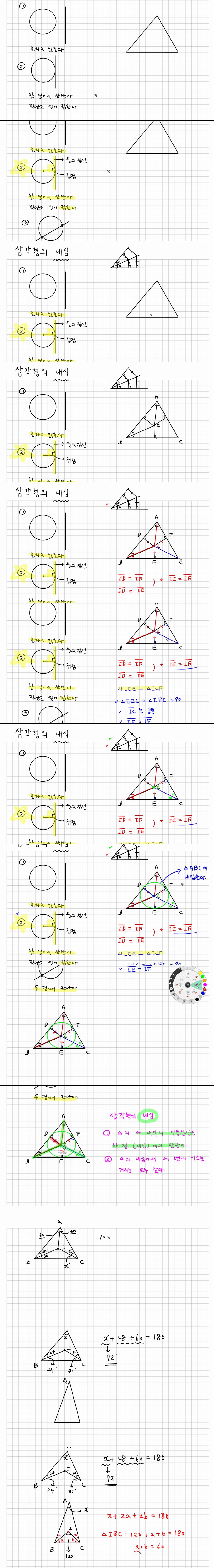애니메이션 애니메이션 [중2 수학] 중2-5-5. 삼각형의 내심 ( 내심의 성질) jibori 2026.04.24 6,767 366 다운로드 추천 366 북마크 공유 다운로드 파일 · 1개 [중2 수학] 중2-5-5. 삼각형의 내심 ( 내심의 성질).mp4 FILE 53.0M 다운로드 TAGS #중2 #수학 #삼각형의 #내심 #내심의