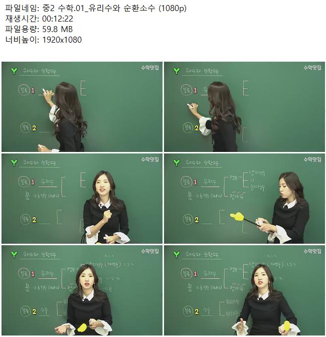 애니메이션 애니메이션 중2 수학.01_유리수와 순환소수 (1080p) 쿠무 2026.04.24 5,378 251 다운로드 추천 251 북마크 공유 다운로드 파일 · 1개 중2 수학.01_유리수와 순환소수 (1080p).mkv FILE 59.8M 다운로드 TAGS #중2 #수학 #유리수와 #순환소수