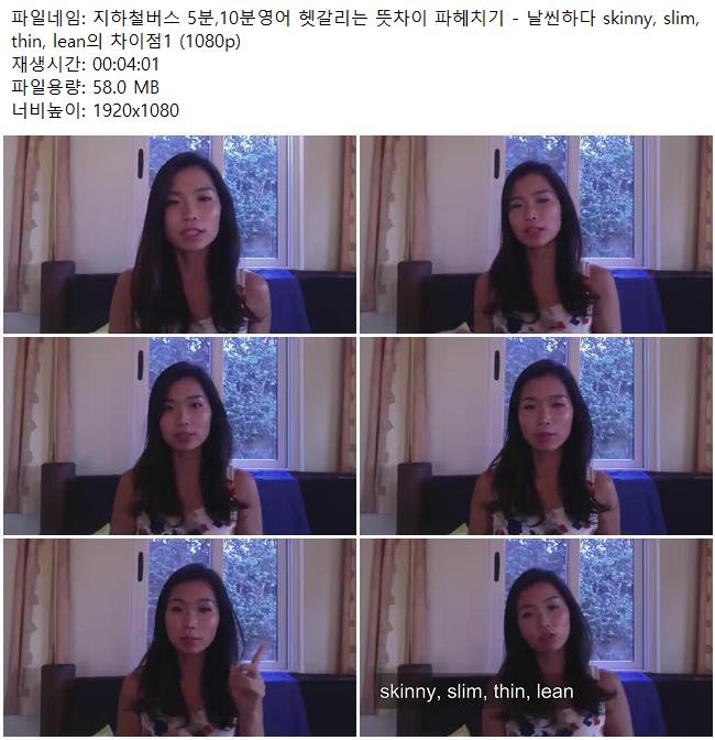 애니메이션 애니메이션 지하철버스 5분,10분영어 헷갈리는 뜻차이 파헤치기 - 날씬하다 sk.. 쿠무 2026.04.24 4,735 318 다운로드 추천 318 북마크 공유 다운로드 파일 · 1개 지하철버스 5분,10분영어 헷갈리는 뜻차이 파헤치기 - 날씬하다 skinny, .. FILE 58.0M 다운로드 TAGS #지하철버스 #5분 #10분영어 #헷갈리는 #뜻차이